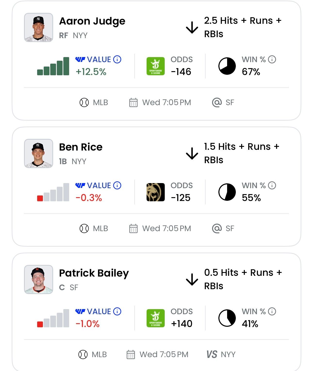 Everyday the prop evaluator will surface the highest Value MLB props across 15+ books. Identify the bet types you feel comfortable targeting, filter the app for those ones, and then use the WalterPicks app and other tools to do follow up research.