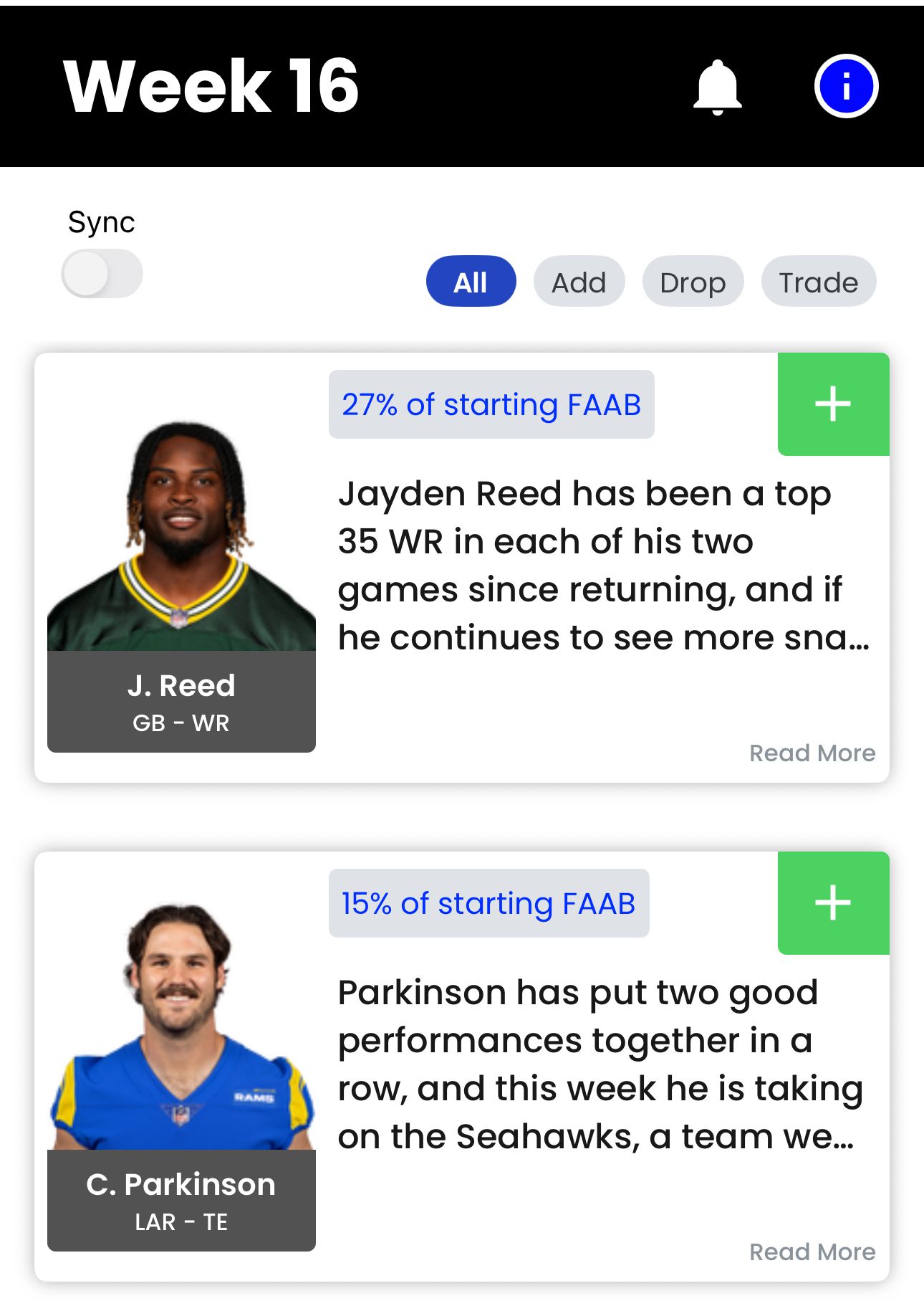 Recommended Transactions for Week 16