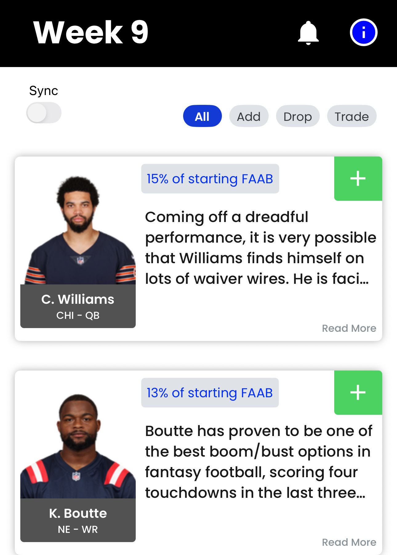Every week the Transactions Tool in the WalterPicks app populates with recommended adds, drops, and trades that you should be considering to improve your fantasy teams. All recommendations come from our transactions team and are powered by Walter’s projections carrying out thousands of simulations of the rest of the season.