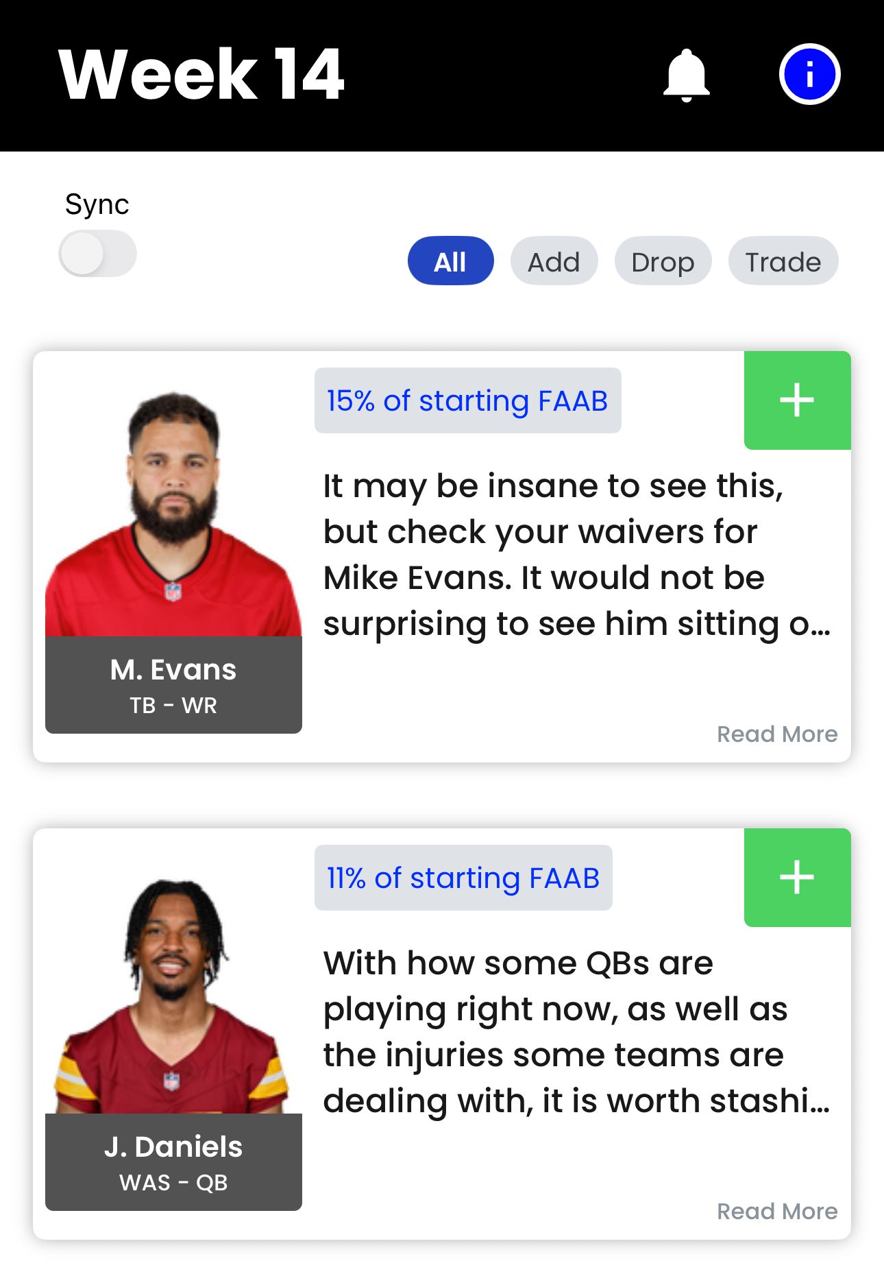 Every week the Transactions Tool in the WalterPicks app populates with recommended adds, drops, and trades that you should be considering to improve your fantasy teams. All recommendations come from our transactions team and are powered by Walter’s projections carrying out thousands of simulations of the rest of the season.